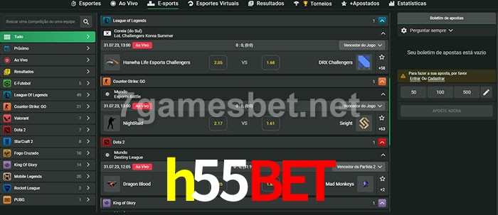 O h55bet oferece uma grande seleção de opções de apostas em e-sports com probabilidades competitivas